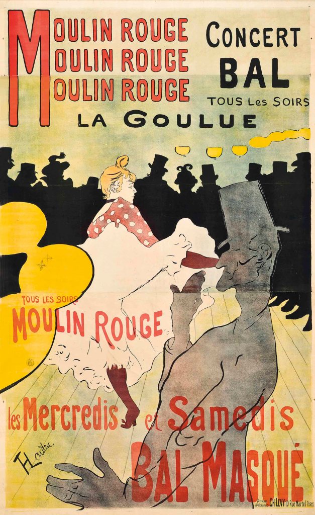 在巴黎亨利居住于蒙马特高地,他被称作「蒙马特之魂」。他的作品生动地描绘出红磨坊以及蒙马特和巴黎其他夜总会、剧院的生活。不仅为作曲家阿里斯蒂德.布留安做肖像画,也为他经常光顾的妓院作画。1891年,他为歌剧院的名舞娘「拉古留」为题,做出出色的红磨坊海报,使她的名声得以不朽。同时平板印刷术的名誉也因罗特列克的应用而更加有声望。